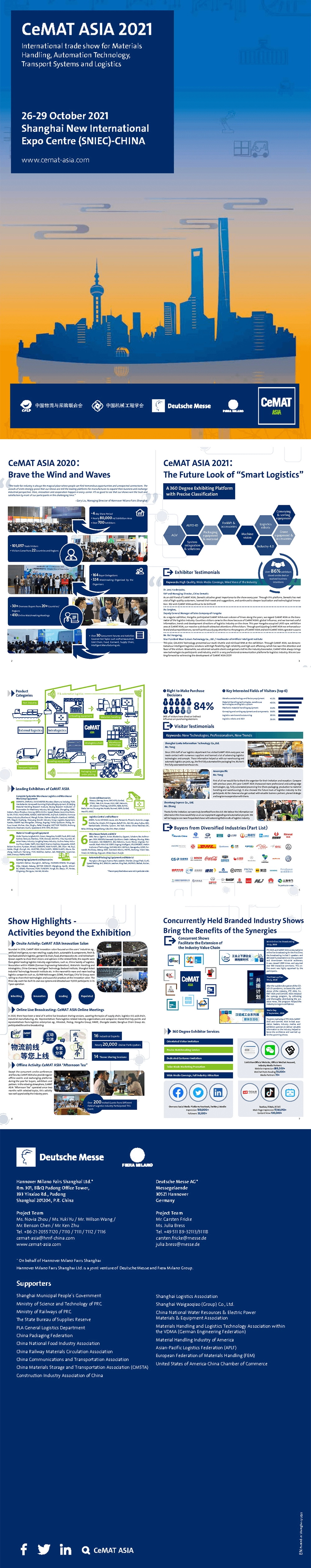 22. Międzynarodowa Wystawa Technologii Logistycznych i Systemów Transportowych, coroczne wydarzenie branżowe w regionie Azji i Pacyfiku, odbędzie się w Shanghai New International Expo Center w dniach 26–29 października 2021 r. Wystawa pod hasłem „Smart Logistics” zaprezentuje innowacyjne osiągnięcia inteligentnej produkcji i wspólnie zbuduje dużą platformę przemysłową z różnych dziedzin.